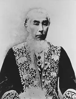 Motoda Nagazane (元田 永孚) (30 October 1818 – December 22, 1891) was a Japanese samurai and Confucian scholar. He was also known as "Eiji" and his childhood name was "Daikichi".