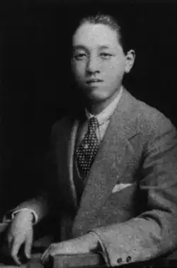 From 1915 to 1917, Ōtaguro held private concerts in his Ōmori-sannō mansion, where he played contemporary pieces on his own piano, despite not being a professional musician.[8] These concerts were held for an audience of about 20 people, including composer Keizō Horiuchi and critic Kōichi Nomura. Despite their small and private audiences, the concerts had programs printed elaborately by Kiyoshi Hasegawa, who lived in Ōmori-sannō at the time.[9] Ōtaguro held a piano concert at the Tokyo YMCA center titled "Scriabin–Debussy Evening"[nb 4] on December 9, 1916.[11] This was the first concert in Japan dedicated to either of the composers' music.[12][nb 5]