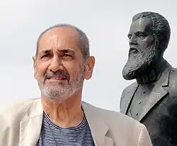 Mordechai (Motti) Mizrachi (Hebrew: מוטי מזרחי; born 1946) is an Israeli multimedia artist who creates politically engaged conceptual works that combine sculpture, video, photography, public art and performance.[1] Dough, Via Dolorosa (1973) and Healing (1980) marked the emergence of avant-garde Israeli performance and video art. Since the 1980s, he has created numerous site specific public sculptures.[2]