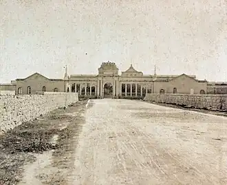 A proposal by Italian refugee Francesco Cianciolo was selected over other entries which had been submitted by G. Bonavia, V. Mallia & A. Caruana, G. Grognet and G. Diacono. The project's estimated cost of £40,000 was deemed to be excessive, so a revised proposal which included the Lunatic Asylum but not the Ospizio was prepared, reducing the estimated cost to £14,000.[a] A site located within the limits of Attard was chosen, and construction began in September 1853.[1] After works had commenced, it came to light that Cianciolo's designs did not include basic necessities and had been plagiarised from 1818 plans of the Wakefield Asylum in England. This revelation cast doubt on Cianciolo's professional qualifications, and further changes to the design had to be made during the course of construction.[3] English architect William Scamp was involved in the construction project as a consultant.[4]