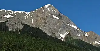Mount Poland is a 2,853-metre (9,360 ft) mountain summit located in the Canadian Rockies of British Columbia, Canada. The mountain is situated 40 km (25 mi) north of Golden in the Blaeberry Valley, 4 km (2.5 mi) southeast of Mount Mummery. The mountain was named after Canadian Army Private Herbert J. Poland of Golden, BC, who was killed in 1944 World War II action.[1][5] The mountain's name was officially adopted July 5, 1961, when approved by the Geographical Names Board of Canada.[4] The first ascent of the mountain was made in 1958 by J. Owen, E. Pigou, and guide A. Bitterlich.[1]