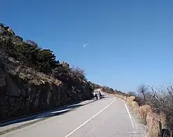 Mount Scott (Comanche: Pisaroya, "Big Mountain")[4] is a prominent mountain just to the northwest of Lawton, Oklahoma rising to a height of 2,464 feet (751 m)[5] and is located in the Wichita Mountains near Fort Sill Military Reservation and lies in the Wichita Mountains National Wildlife Refuge (WMWR). The US Fish and Wildlife Service is responsible for the maintenance of the area. Visitors can reach the summit by car or bicycle via a three-mile paved road. Hiking is allowed, although there are no formal trails and the paved road is open to pedestrians and bicycles from 6am to 9:30 am only. Mount Scott is also popular for its numerous rock climbing areas. The peak was named in honor of General Winfield Scott.[6]