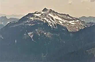 Mount Tommy Thompson is a 6,780-foot-elevation (2,070-meter) mountain summit located in Skagit County of Washington state. It is situated eight miles southeast of the town of Marblemount, within the Glacier Peak Wilderness, on land managed by Mount Baker–Snoqualmie National Forest, on the west slopes of the North Cascades Range. The nearest higher named neighbor is Snowking Mountain, 3.16 miles (5.09 km) to the southeast.[1] Topographic relief is significant as the southwest aspect rises 3,670 feet (1,120 meters) above Slide Lake in less than two miles. Precipitation runoff from Mount Tommy Thompson drains into tributaries of the Skagit River.