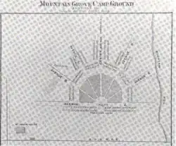 The Mountain Grove Campground was a campground, active between 1872 and 1901, that formed part of the 19th- to early 20th-century camp meeting movement, where camping was combined with worshiping and listening to preachers. These meetings were often held by Protestants, in this case, Methodists. Mountain Grove Campground was a site and resort on the Danville, Hazleton and Wilkes-Barre Railroad in Black Creek Township, Luzerne County, Pennsylvania, in the United States.[1][2] It existed for approximately 30 years[2] and was run by the Mountain Grove Camp Meeting Association. A businessman named G.M. Shoop was the original owner of the campground's land. Many prominent citizens of the surrounding area were in the association. During the campground's operation between 1872 and 1901, it was renovated and expanded several times. While the camp meetings that were held there were intended for Methodists, non-Methodists occasionally attended them.[1]