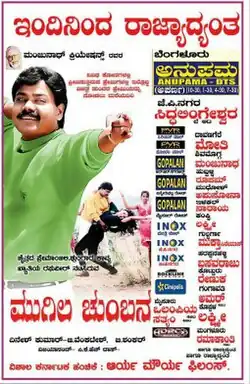Mugila Chumbana (transl. Kiss of clouds) is a 2013 Indian Kannada-language romantic drama film directed by B Shankar. The film was also produced and co-written by Raghuveer, who also stars in the film alongside Shravanthi and Shakuntala.