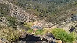 The park contains the 50-metre (164 ft) Lesmurdie Falls, formed by Lesmurdie Brook emptying over the Scarp, and the surrounding riparian and heath vegetation.[2] Wandoo, jarrah and marri trees can all be found within the park. A gravity hill exists near the carpark on Palm Terrace.