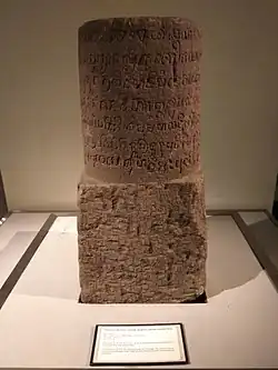 Munggu Antan is an inscription in the Old Javanese language in the form of a stone stele found in the village of Bulus, Purworejo Regency, which was once included in the Kedu Residency (now in Central Java, Indonesia). This inscription contains the designation of the village Munggu Antan as a sima (a revenue-diverted area), becoming the domain of a Buddhist monastery (vihāra) in Gusali. This inscription was issued on 9 February 887[1] by the official (sang pamegat) of Munggu and his younger sister Sang Hadyan Palutungan, who was also the wife of the 'deity who rests at Pastika' (a deceased king), at the behest of the reigning king Bhadra, lord of Gurunwangi.[2][3] Only four days after this inscription was issued, King Bhadra is said to have fled the palace, ushering in a period of contested leadership that lasted until 894.[4]: 24–25