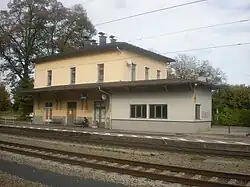 Aßling (Oberbay) station was opened on 15 October 1871 with the line. It has three tracks, but only two platform tracks as the third track serves as a passing track. The entrance building is still preserved and is located next to the main platform. The opposite side platform is connected by an underpass to the main platform. The Aßling railway disaster, which killed at least 102 people, occurred on 16 July 1945 near the station.