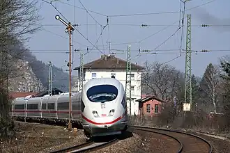 Long-distance travel times were to be reduced by three minutes.[16] Construction work began in mid-June 2011.[17] Due to a lack of planning resources for the new ETCS train control system, the final upgrade was delayed indefinitely.[18] Among other things, Pfaffenhofen station was renovated in 2020 and 2021.[19][20] Residual work was expected to be completed in the second quarter of 2022.[21] The planning and construction costs for the final upgrade was estimated to be €234 million at the beginning of 2018. The implementation of ETCS, which is necessary to realise the higher speeds, is to be completed by 2023.[22][23]