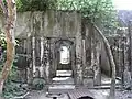 Moss-covered ruins of the Munshibari mansion during the monsoon.