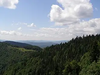 The relief of the Muránska planina national park is very rugged and in many places rocky. The central territory is formed by the massif of the Muránska planina mountains that is part of the Spišsko-gemerský kras.[1] The overall length of the karst landscape from the settlement of Červená Skala (part of Šumiac) to the town of Tisovec is about 25 km.