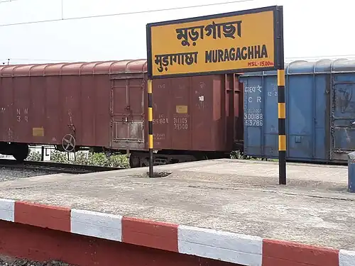 Muragacha railway station is a railway station under Sealdah railway division of Eastern Railway system. It is situated beside Nakashipara Road in Muragacha on the Krishnanagar–Lalgola lines in Nadia in the Indian state of West Bengal. The distance between Sealdah and Muragacha is 117 km.[1] Few EMU and Lalgola passengers trains are passing through Muragacha railway station.[2]