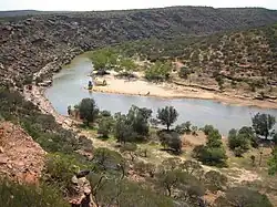 The Murchison River is the second longest river in Western Australia. It flows for about 820 km (510 mi)[1] from the southern edge of the Robinson Ranges to the Indian Ocean at Kalbarri. The Murchison-Yalgar-Hope river system is the longest river system in Western Australia. It has a mean annual flow of 208 gigalitres, although in 2006, the peak year on record since 1967, flow was 1,806 gigalitres.[3][1][5]