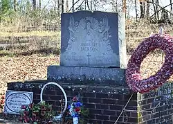 Jackson was honored at his memorial service, eulogized as a martyr to a moral cause.[13] He was buried in Heard Cemetery, an old slave burial ground, next to his father. His headstone was paid for by the Perry County Civic League. In the decades since, his headstone has been vandalized, bearing the marks of at least one shotgun blast.[7]