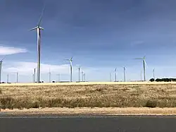 The Murra Warra Wind Farm is one of Australia's largest wind farms. Located on the plains of north-western Victoria, approximately 25 kilometres (16 mi) north of the city of Horsham, it consists of 99 wind turbines with a maximum tip height of 220m.