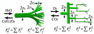 In the first, organisms have free (variable) circulatory volume. Also, maintenance energy is not proportional to the pipe material, but instead the quantity of working fluid. The latter assumption is justified in metabolically active biological fluids, such as blood.[4] It is also justified for metabolically inactive fluids, such as air, as long as the energetic "cost" of the infrastructure scales with the cross-sectional area of each tube; such is the case for all known biological tubules.[5]