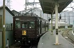 The short platform (platforms 3 and 4) for the Ōkawa branch line was used until March 1996, when the branch line started operating three-car trains that were longer than the platform.[3]