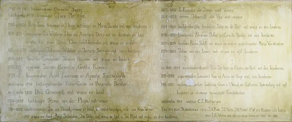 2. ^ van der Wiel, Kees (2005). Wevers, huisbazen en ander volk (De geschiedenis van Middelstegracht 143) (Eng: Weavers, landlords and other folks). Leiden: Stichting Het Leids Wevershuis. pp. 16, 17.