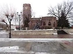 The guardhouse's appearance remained largely unchanged until the early 1930s. In 1931, the clock chime from its tower was dismantled and relocated to Samara, to the newly constructed House of the Red Army of the Volga Military District.[6] During the 1970s, a front garden was added, featuring retaining walls made of coquina slabs and an improvised fence in the form of metal balls with chains, in front of the main entrance to the building. In 1977, sculptor V. Stepanyan installed a monument to Alexander Pushkin in the front garden. The guardhouse building served its intended purpose during the Russian Empire and in the USSR until the end of the 1970s.[4]