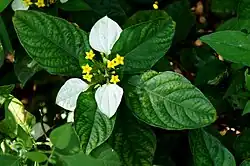 Mussaenda pubescens is a plant from the coffee family, Rubiaceae that is found in Indonesia.