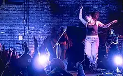 In fifth grade, she auditioned for her school rock band.[3] Expecting to audition for cello, she was instead asked to sing Oasis' song "Wonderwall", and ended up joining as a vocalist,[11] where she recalls singing "The Middle" by Jimmy Eat World.[1] In sixth grade, she began playing guitar, learning in part from her father.[10]