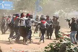 - ^ "Police coral student protesters". Mizzima News. Agence France‑Presse. 5 March 2015. Retrieved 11 March 2015.