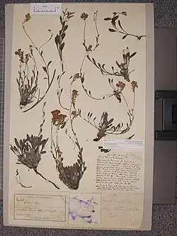 Multiple specimens of original material (syntypes) of Myosotis goyenii were collected in different localities in Otago, New Zealand by Peter Goyen (from Arrowtown) and Donald Petrie (from the Cardrona Valley and Lake Hawea). The lectotype was designated by Carlos Lehnebach,[6] and is lodged at the herbarium of the Museum of New Zealand Te Papa Tongarewa (WELT SP002484).[7][5]