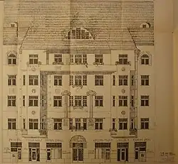 The picture "37 Népszínház Street – first façade plan 1909" shows the first draft made by the architects, which was rejected. It's not so "common", but on several occasions the investor did not like the first draft and requested a completely new façade from the architects.