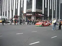 Jeremy Mayfield driving past the Barclay–Vesey Building, the Verizon headquarters, in 2005 during Champion's Week