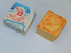 Nabulsi soap (Arabic: صابون نابلسي ṣābūn Nābulsi) is an olive oil-based hard soap from the Palestinian city of Nablus.[2] Its chief ingredients are virgin olive oil, water, and an alkaline sodium compound, such as sodium hydroxide. The finished product is coloured ivory, and has almost no scent. Traditionally made by women for household use, it had become a significant industry for Nablus by the 14th century. In 1907, the city's 30 soap factories were supplying half of all soap in Palestine. The industry had begun declining by the mid-20th century due to the destruction inflicted on the Old City of Nablus by the 1927 Jericho earthquake and later due to the 1967 Arab–Israeli War and consequential Israeli occupation of the West Bank. As of December 2022, there are at least five soap factories operating in the City of Nablus .