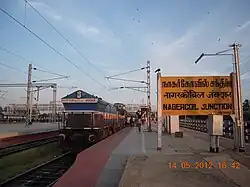 Nagercoil Junction railway station (station code: NCJ[2]) is an NSG–3 category Indian railway station in Thiruvananthapuram railway division of Southern Railway zone.[4] It is a railway junction in Kanyakumari district in the state of Tamil Nadu.