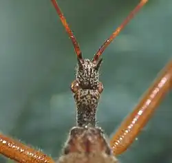 The species has only one generation per year (univoltine). Mating and egg laying take place in spring. The larvae reach the adult stage in August and September. The imago overwinters. In warm, sunny regions these assassin bugs live on deciduous trees, especially on oaks (Quercus species), more rarely on shrubs. These bugs feed exclusively on other insects and possibly arachnids and lepidopteran larvae. [2] They are recorded to prey flatid planthoppers (Metcalfa pruinosa),[1] the larvae of Macrophya punctumalbum, the cricket Arachnocephalus vestitus, but also several diptera. [2]