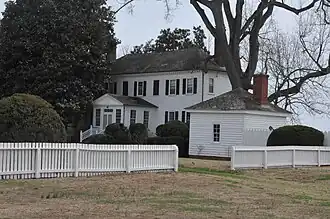 Nanzatico is a historic plantation house located at King George Court House, King George County, Virginia. It was built about 1770, and is a frame, two-story structure, seven-bays wide, with a hipped roof, and two interior end chimneys. The front facade features an engaged portico consisting of heroic pilasters, entablature, and bulls-eye pediment. Also on the property are the contributing square frame smokehouse, a frame summer kitchen, and a frame schoolhouse or office. Next to Mount Vernon, Nanzatico is probably the most formal frame colonial mansion in Virginia.[3]