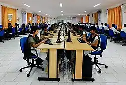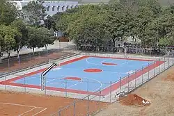 Hostels are available for students (Air Conditioned A.C & Non-A.C) and faculties along with a guest house, canteens, medical centre, indoor stadiums. The campus has a good cricket pitch of the central strip of the cricket field between the wickets. It is 22 yd (20.12 m) long (1 chain) and 10 ft (3.05 m) wide. The surface is flat and normally covered with extremely short grass. The campus also contains a good playground for athletics and various sports.