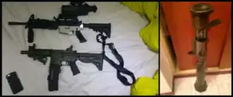 Photos from Campo's phone showing two firearms and an AT4 rocket launcher.