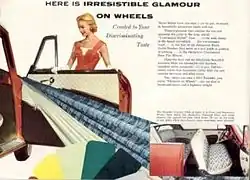 The Rambler's interior was designed by Helene Rother to also appeal to the feminine eye. American Motors used the tagline, "Created to Your Discriminating Taste," in the car's marketing, highlighting the elegant, stylish, and expensive fabrics that coordinated in color and trim.[36]