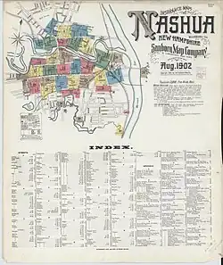 (1902) Sanborn Fire Insurance Map. Nashua, New Hampshire. The ballpark location corresponds to the south end of the map under the#20.