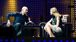 In 2015, together with Timon Afinsky, Vodianova co-founded the digital app Elbi, which allows people to donate money with a "Love Button", create content, send messages, and vote for charitable purposes.[51] The app was promoted by the Clinton Global Initiative Commitment in 2016 and supported by Joanna Shields, Bebo co-founder Michael Birch, Wikipedia founder Jimmy Wales, Huffington Post co-founder Arianna Huffington, Mind Candy founder Acton Smith, designer Diane von Furstenberg, co-founder of Lastminute.com and Made.com Brent Hoberman, as well as the founder and CEO of Illumination Entertainment, Chris Meledandri.[52][53]