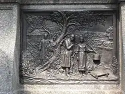 Scene from Natalka Poltavka on the Kotlyarevsky monument in Poltava (sculptor L. Pozen (1903))