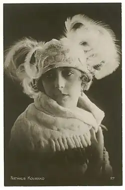 Nathalie Ivanovna Kovanko (Ukrainian: Наталія Іванівна Кованько, Russian: Наталья Ивановна Кованько; 13 September 1899 – 23 May 1967) was an Ukrainian film actress of the silent era who worked in France.[1] Born Natalia Ivanovna Kovanko in Crimea, then part of the Russian Empire, now Ukraine, in 1919 she emigrated to France following the Russian Revolution. She married Viktor Tourjansky, a fellow exile. She later returned to live in USSR, where she died in 1967.