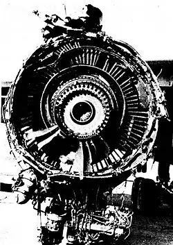 N60NA's No.3 engine after the failure, showing the remains of the failed fan assembly