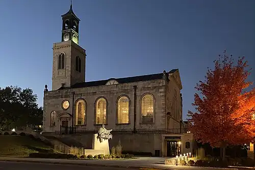 America’s National Churchill Museum (formerly the Winston Churchill Memorial and Library), is located on the Westminster College campus in Fulton, Missouri, United States. The museum commemorates Sir Winston Churchill, the former Prime Minister of the United Kingdom, and comprises three elements: the Church of St Mary Aldermanbury, the museum itself, and the Breakthrough sculpture. The London church was renovated by English architect Christopher Wren in 1677, damaged during World War II, and deconstructed and rebuilt in Missouri in the 1960s.[1]
