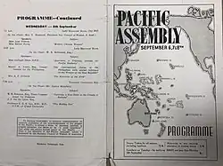 The Pacific Assembly was a gathering in Brisbane City, Australia, over a three-day period in the 20th century. The assembly was sponsored by the National Council of Women. The gathering included representatives from many different countries around the world.