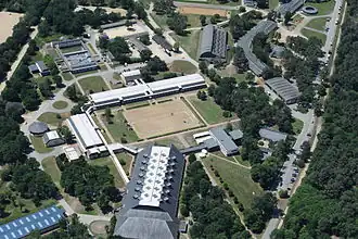 The school is located on two sites: the 130-hectare Terrefort site, where the school's buildings and infrastructure are located, and the Verrie site, where the racecourse is used for international competitions, springs, and training courses.[6]