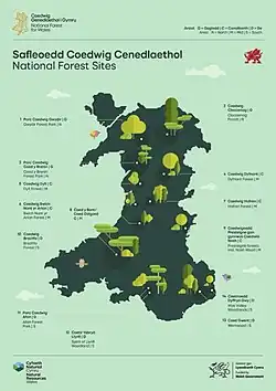 9. ^ a b "First sites announced for National Forest – "Among very best woodland in Wales"". GOV.WALES. Retrieved 2022-04-29.