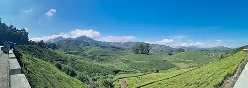 Tea plantations viewed from NH85 in Kannan Devan Hills, Idukki district, Kerala