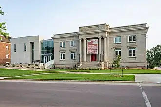 The NMM is housed in a complex that incorporates an historic building (originally the university's library, built in 1910 with a grant from Andrew Carnegie's library building program) mated with a modern addition, which was opened in 2021.[5] The Concert Hall has superb acoustics and provides a perfect setting for performing and recording music played on original instruments of various historical periods and cultural milieu. There is a specialized library, extensive study-storage areas, and a laboratory for the conservation and restoration of the instruments. There are violin-making tools and Baroque fittings, early harpsichord and fortepiano tuning hammers, and 1,000 brass instrument mouthpieces from virtually every turn-of-the-century manufacturer.
