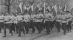The youthful nature of the OWP also had side effects. Young people, severely affected by the Great Depression, sought radical remedies, inspired by corporatism, the American New Deal program (implemented since 1933) and especially Italian fascism, which was attracted by the idea of solidarity, social policies, the development of the automobile and aviation, modernist construction, modern art, the violation of the liberal paradigm and socialism, despite the fact that it originated from socialism. The 27-year-old Stefan Niebudek, a member of the Main Board of the SN, succumbing to youthful idealism, wanted to see in Benito Mussolini a resurrector of the ancient Roman tradition, a unifier of the Italian nation, and at the same time a defender of the Catholic faith. His reportage titled In the Country of Black Shirts, written under the influence of a ten-day trip to Italy at Easter 1937, was perhaps the most far-reaching apologia for Mussolini's state in this political formation, with the author paying more attention to Catholic cultural monuments and relics of antiquity than to the infrastructural achievements of the regime. Under the influence of fascism, there was a fashion for uniforms, greeting each other with the Roman salute, and parades through the streets of cities. This was also the influence of the experience of World War I, as well as the egalitarization of societies in its aftermath, resulting in the postulate that everyone, regardless of background and wealth, should look alike or even the same. Dmowski found this fashion funny. He gave way to the young, but did not put on the uniform himself.[7]