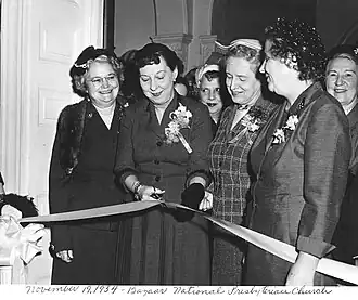 The National Presbyterian Church dates its origins to 1795, when a group of Scottish stonemasons working on the construction of the White House met for worship.[5] Since then, the congregation has been housed in several buildings across the city. Numerous presidents as well as other national and international leaders have attended the church. In 1866, the pastor invited Frederick Douglass, noted black abolitionist, to speak from the church's pulpit when no other church in Washington other than New York Avenue Presbyterian Church would do so. The church has hosted the British royal family, Mother Teresa and many other notable leaders.[6][7]