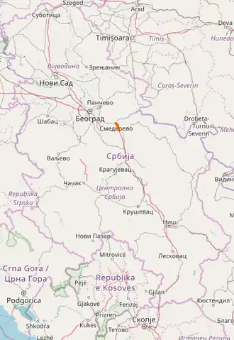National Road 1.10 (alternatively marked as M-1.10, M1.10 and M 1.10), was a road in Serbia, connecting Ralja with Smederevo. After the new road categorization regulation given in 2013, the route wears the name 14, except for the section Radinac – Smederevo 1, which is currently not numbered.[1][2] The route was a national road with two traffic lanes.